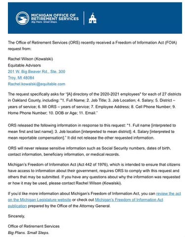 Equitable sent a Freedom of Information Act request to 27 school districts in Michigan requesting the following info for all employees: