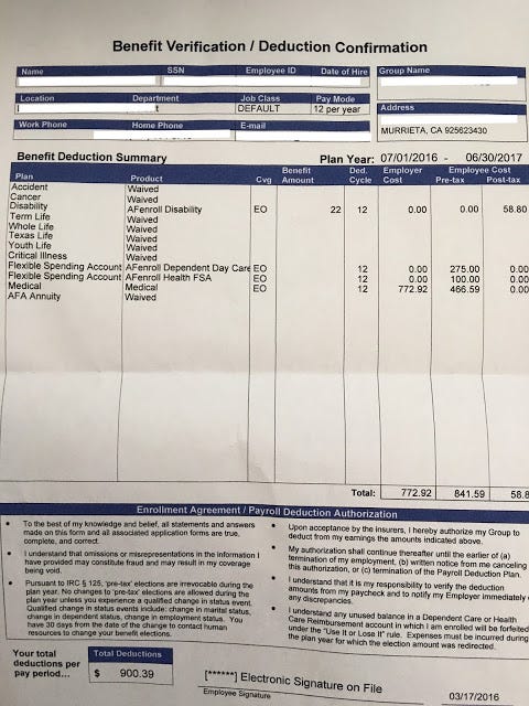 Don't believe me, here is the receipt from my wife's meeting yesterday. I also have proof of when our benefits were taken out after-tax.